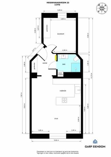 Generelle bestemmelser Alle innvendige og utvendige arealangivelser, samt beskrivelser av bygningen er hentet fra vedlagte tilstandsrapport/boligsalgsrapport. Salgsoppgaven er basert på de opplysningene selger har gitt til megler, den bygningssakkyndiges tilstandsrapport, samt opplysninger innhentet fra kommunen, Kartverket og andre tilgjengelige kilder. Det er viktig at kjøper setter seg grundig inn i alle salgsdokumentene, herunder salgsoppgave, tilstandsrapport og selgers egenerklæring. Kjøper anses kjent med forhold som er tydelig beskrevet i salgsdokumentene, og slike forhold kan ikke påberopes som mangler. Dette gjelder uavhengig av om kjøper har lest dokumentene. Det kan være avvik fra dagens rombruk/rombenevnelser sammenlignet med det som er byggemeldt/godkjent. Alle interessenter oppfordres til å undersøke eiendommen nøye, gjerne sammen med fagkyndig før bud inngis. Kjøper som velger å kjøpe usett kan ikke gjøre gjeldende som mangel noe han burde blitt kjent med ved undersøkelsen. Dersom det er behov for avklaringer, anbefaler vi at interessenter rådfører seg med eiendomsmegler eller egne rådgivere før det legges inn bud. En bolig som har blitt brukt i en viss tid, har vanligvis blitt utsatt for slitasje og skader kan ha oppstått. Slik bruksslitasje må kjøper regne med, og det kan avdekkes enkelte forhold etter overtakelse som nødvendiggjør utbedringer. Normal slitasje og skader som nødvendiggjør utbedring, er innenfor hva kjøper må forvente og vil ikke utgjøre en mangel. Kjøper og selgers rettigheter og plikter reguleres av avtalen mellom partene, samt informasjonen som har vært tilgjengelig for kjøperen i forbindelse med handelen. Avtalen utfylles av avhendingsloven, og det gjelder ulike avtalevilkår avhengig av om kjøper er forbrukerkjøper eller ikke. Dette er nærmere beskrevet nedenfor. På grunn av ulike avtalevilkår kan selger vurdere bud fra en som ikke er forbruker, ulikt fra en forbrukers bud. Dersom kjøper ikke er forbruker, er selger sitt mulige mangelsansvar begrenset fordi eiendommen selges "som den er". Selger kan ikke ta «som den er» forbehold ovenfor en forbrukerkjøper. Selv et lavere bud fra en som ikke er forbruker kan foretrekkes fordi begrensningen i mulig mangelsansvar kan ha egenverdi for selger. Selger står fritt til å forkaste eller akseptere ethvert bud, og er for eksempel ikke forpliktet til å akseptere høyeste bud. Budgiver skal i budskjema avgi egenerklæring om budgiver er forbruker eller næringsdrivende/ person som hovedsakelig handler som ledd i næringsvirksomhet. Budgivere får informasjon dersom andre bud er inngitt av en som ikke er forbruker. Forbrukerkjøp - definisjon Med forbrukerkjøp menes kjøp av eiendom når kjøperen er en fysisk person som ikke hovedsakelig handler som ledd i næringsvirksomhet. Forbruker – avtalevilkår Eiendommen har en mangel dersom den ikke er i samsvar med kravene som følger av avtalen, eller det foreligger brudd på bestemmelsene i avhendingsloven §§ 3-2 til 3-8. Hvis eiendommen ikke er i samsvar med det kjøperen må kunne forvente ut ifra alder, type og synlig tilstand, kan det være grunnlag for mangelskrav. Det samme gjelder hvis det er holdt tilbake eller gitt uriktige opplysninger om eiendommen. Dette gjelder likevel bare dersom man kan gå ut ifra at det virket inn på avtalen at opplysningen ikke ble gitt eller at feil uriktige opplysninger ikke blir rettet i tide på en tydelig måte. Boligen kan ha en mangel etter avhendingsloven § 3-3 dersom det er avvik mellom opplyst og faktisk innvendig areal, forutsatt at avviket er på 2% eller mer og minimum 1 kvm. Ved beregning av et eventuelt prisavslag eller erstatning må kjøper selv dekke tap/kostnader opptil et beløp på kr 10 000 (egenandel). Ikke-forbruker (næringsdrivende) – definisjon Hvis kjøper er en juridisk person, eller en fysisk person som hovedsakelig handler som ledd i næringsvirksomhet, vil kjøpet ikke anses som et forbrukerkjøp. Ikke-forbruker – avtalevilkår Eiendommen har en mangel dersom den ikke er i samsvar med kravene som følger av avtalen. Eiendommen selges «som den er», og selgers ansvar utover det konkret avtalte er da begrenset etter avhendingsloven § 3-9, første ledd andre setning. Avhendingsloven § 3-3 andre ledd fravikes, og hvorvidt boligens arealsvikt utgjør en mangel vurderes etter avhendingsloven § 3-8. Informasjon om kjøpers undersøkelsesplikt, herunder oppfordringen om å undersøke eiendommen nøye, gjelder også for kjøpere som ikke anses som forbrukere.