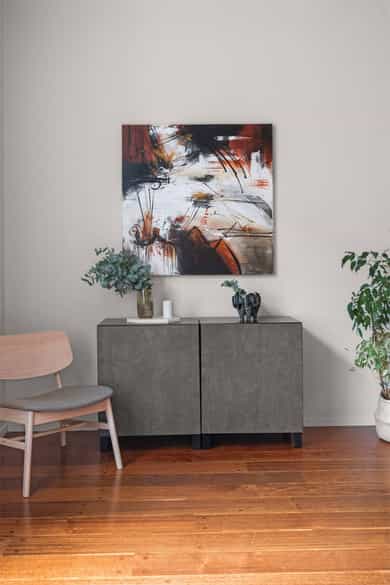 Diverse fra tilstandsrapporten: -Parkering: Gateparkering. -Interne boder: Ingen innvendige boder. -Eksterne boder: Kjellerbod på 5 kvm. -Takhøyde: Takhøyden er målt til 300 cm i stuen. -Vinduer sør: 2-lags isolerglassvinduer i trekarmer fra 2024. -Vinduer nord: 2-lags isolerglassvinduer i trekarmer fra 1988. -Bad overflateoppusset i regi av eier i 2022. Entre: Parkett på gulv og malt overflate på vegger. Downlights i himling. Skyvedørsgarderobe og sikringsskap. Soverom: Parkett på gulv og malt overflate på vegger. Malt overflate i himling. Panelovn. Skyvedørsgarderobe. Bad: Flis på gulv og flis på vegger. Downlights og malt overflate i himling. Gulvvarme. Utstyrt med servant, servantskap, dusjhjørne, innfellbare dusjdører, opplegg for vaskemaskin, naturlig avtrekk og veggmontert wc uten lekkasjesikring. Stue: Parkett på gulv og malt overflate på vegger. Malt overflate i himling. Panelovn. Kjøkken: Parkett på gulv og malt overflate på vegger. Malt overflate og downlights i himling. Innredning med kullfiltervifte over stekesonen og opplegg for oppvaskmaskin. Det er integrert fryseskap, kjøleskap, platetopp, stekovn, oppvaskmaskin og mikroovn. Følgende punkter har fått tilstandsgrad 2 i tilstandsrapporten: Vinduer og dører: Vinduer nord: TG2 settes pga bakgrunn i alder (isolerglass over 30år) og det vil være risiko for at vindusglass punkterer. Kjøkken - Avtrekk: TG2 settes pga kullfiltervifte og manglende lekkasjesikring under kjøkkenbenken. Avløpsrør: TG2 settes pga alderen. Vannledninger: TG2 settes pga alderen. Stoppekran er ikke lokalisert i leiligheten og denne er sannsynligvis plassert i fellesareal. Ikke lokalisert og derfor ikke funksjonstestet. Varmtvannsbereder: TG2 settes pga berederen er ikke plassert i rom med sluk og mangler lekkasjesikring. Berederen har passert 20 år og har usikker restlevetid. Våtrom - Overflater: TG2 settes pga fall til sluk. Våtrom - Sanitærutstyr: TG2 settes pga det er ikke etablert noen drensåpning for synliggjøring av eventuelle lekkasjer fra innebygget sisterne til klosettet, og det er ikke forevist noen dokumentasjon på annen godkjent løsning. Våtrom - Ventilasjon: TG2 settes pga rommet har kun naturlig avtrekk. Våtrom - Membran, tettesjikt og sluk: TG2 settes pga alder på tettesjikt og derav økt risiko for lekkasjer. Tilstandsrapport for boligen er vedlagt salgsoppgaven. Se denne for nærmere informasjon om tilstandsgrad.