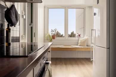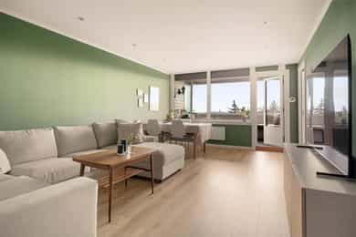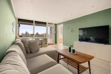 Pen, lys og gjennomgående 3-roms m/solrik innglasset balkong | Nytt bad i 2020| Vv. og TV/internett inkl. | Utsikt!