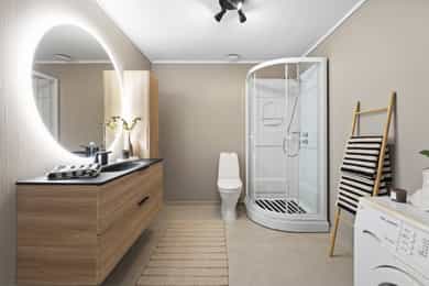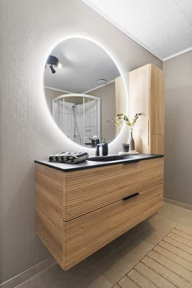- Ny baderomsinnredning med oppvarmet speil med varme- og lysregulering