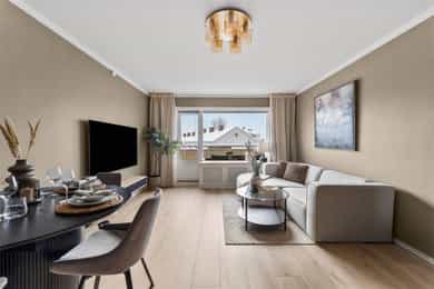 Velkommen til Østerliveien 66A - En lys og moderne 3-roms toppleilighet beliggende i et veletablert og populært boligområde på Lambertseter. Boligen ble vesentlig oppgradert i 2024 med bl.a. nytt kjøkken, optimalisert planløsning, nye gulv og malte overflater. Leiligheten oppleves svært lys og innbydende med gjennomgående planløsning og store vindusflater. Fra stuen er det utgang til en solrik balkong på 7 kvm med hyggelig utsyn. Høydepunkter:
