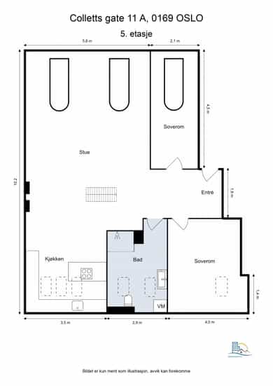 Leiligheten inneholder: Entré, 2 soverom, bad, stue/kjøkken og privat takterrasse. Utdrag fra tilstandsrapporten. TG2: AVVIK SOM IKKE KREVER UMIDDELBARE TILTAK Utvendig > Balkonger, terrasser og rom under balkonger Vestvendt takterrasse på ca. 12 m², terrassebord lagt på bjelkelag. Rekkverk av trekonstruksjoner og stålkonstruksjoner. Rekkverkshøyden ble målt til: 113 cm. Vurdering av avvik: - Åpninger i rekkverk er ikke i henhold til krav i dagens forskrifter. - Rekkverkshøyden er 113 cm, rekkverk er for lavt i henhold til referansenivå på 120 cm som er kravet til rekkverk når fallhøyden er over 10 m. Konsekvens/tiltak - Åpninger i rekkverk må endres for å tilfredsstille krav på byggemeldingstidspunktet. Innvendig > Innvendige trapper Rustfri ståltrapp med åpne trinn opp til takterrasse. Vurdering av avvik: - Det registreres manglende rekkverk på nedre del av trappeløp. Konsekvens/tiltak - Rekkverk må monteres på nedre del av trappen. Tekniske installasjoner > Elektrisk anlegg Tilstandsgraden er vurdert ut fra den forenklede og begrensede kontrollen som forskriften inneholder. El-anlegget kan ha feil og mangler som en slik forenklet undersøkelse ikke vil avdekke. Vær derfor oppmerksom på denne risikoen, og søk videre veiledning eller få en fullstendig kontroll utført av registrert elektrovirksomhet. Våtrom > 5. etasje > bad > Overflater vegger og himling Himling med malte plater, innfelt downlights. Vegger med fliser. Vurdering av avvik: - Overflatene ser visuelt bra ut, tilstandsgrad settes av hensyn til alder. Konsekvens/tiltak - Det anses ikke være noen strakstiltak nødvendig, men man bør vurdere å sette inn dusjkabinett på sikt. Man kan også forsegle fugene i dusjsonen. Våtrom > 5. etasje > bad > Overflater Gulv Gulv med fliser, elektrisk gulvvarme. Vurdering av avvik: - Overflatene ser visuelt bra ut, tilstandsgraden settes av hensyn til alder. Konsekvens/tiltak - Det anses ikke være noen strakstiltak nødvendig, men man bør vurdere å sette inn dusjkabinett på sikt. Man kan også forsegle fugene i dusjsonen. Våtrom > 5. etasje > bad > Sluk, membran og tettesjikt Det er plastsluk og smøremembran med ukjent utførelse. Vurdering av avvik: - Mer enn halvparten av forventet brukstid er passert på membranløsningen. Konsekvens/tiltak - Overvåk tilstanden jevnlig. For å få tilstandsgrad 0 eller 1 må tettesjiktet skiftes ut, men tidspunktet for når dette er nødvendig er vanskelig å si noe om. Våtrom > 5. etasje > bad > Ventilasjon Naturlig ventilering via lufteluke. Vurdering av avvik: - Rommet har kun naturlig ventilasjon. NS3600 krever mekanisk/elektrisk styrt vifte for å kunne gi tg 0/1. Naturlig oppdriftsventilasjon er vanlig i blokkleiligheter, og det er normalt ikke tillat til felles kanaler for bygget. Konsekvens/tiltak - Det er vanskelig å etablere en annen løsning. TGIU: KONSTRUKSJONER SOM IKKE ER UNDERSØKT Tilliggende konstruksjoner våtrom Det er ikke utført fuktsøk på aktuell konstruksjon da dette ville medført synlige merker eller skade på overflater. Det forelå ingen visuelle indikasjoner på fuktskader ved befaringstidspunktet, og ikke-destruktiv fuktmåling ble derfor vurdert som unødvendig.