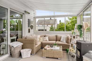 • Innglasset hagestue, solrik terrasse og frodig hage
