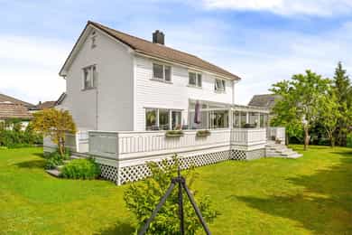 Velholdt enebolig i attraktivt og sentralt villastrøk med stor solrik hage, hagestue, fire soverom og to garasjer