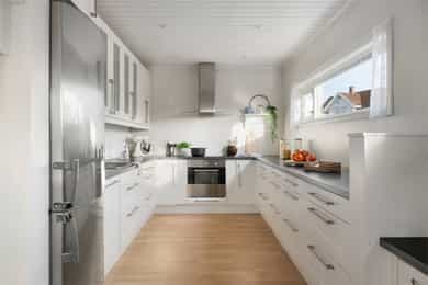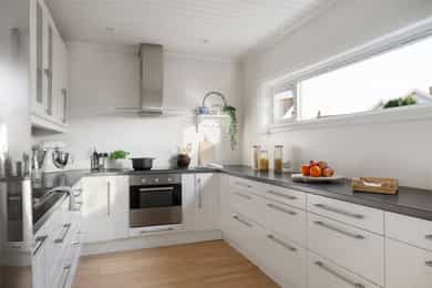 • Hvitt kjøkken fra 2010 med integrerte hvitevarer