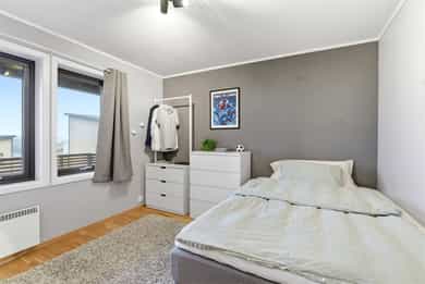 Velkommen til Generalhaugen 25 og et innbydende rekkehus med prakt utsikt. Boligen er løpende godt vedlikeholdt og holder i dag en gjennomgående meget god standard fordelt på 3 innholdsrike etasjer. Her kan det nevnes hele 4 soverom( evt 3 soverom og tv-stue ), 2 flotte og flislagte bad, 3 gode balkonger der 2 av balkongene gir deg en fantastisk utsikt mot blant annet Børvasstindene, deler av byen og flotte turområder. Balkongene er både vendt mot sør og nord der solen går ned på framsiden ca kl 17:00, og på baksiden ca 20:00. Videre ligger eiendommen med sentral og god beliggenhet med lett tilgang til det meste. Kort vei til City Nord og diverse butikker med mer og sentrum med alle byens fasiliteter. Ellers et rolig og barnevennlig område med lekeplass.