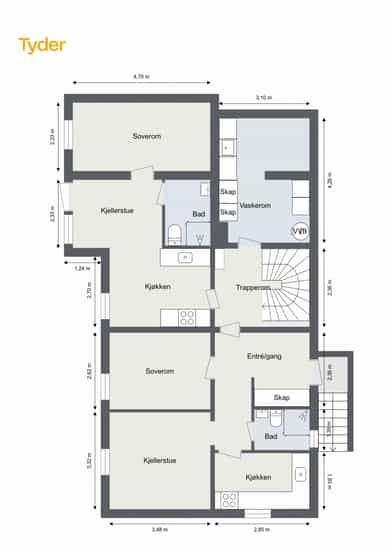 • 294 m² BRA-i med 5 sov, 4 bad, wc og separat vaskerom