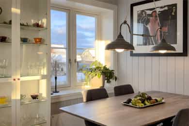 Klassisk og innbydende 4-roms hjørneleilighet i historisk bygg - Stort vakkert kjøkken - 3 soverom - Unikt nærmiljø