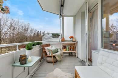 Lys og delikat 3-roms hjørneleilighet med solrik balkong og peis! Lekkert bad fra 2023. Gangavstand til T-bane
