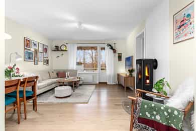 Velkommen til en særdeles lys og delikat hjørneleilighet med attraktiv beliggenhet på Lambertseter! Dette er en luftig 3-roms med store vindusflater, og peisovn som gir en herlig atmosfære. Fra stua er det utgang til en fantastisk balkong med sol fra morgen til kveld. Leiligheten har moderne innredninger og stilfulle fargevalg. Her er det lett å trives! Beliggenheten er tilbaketrukket med kort veil til både Østmarka og sentrum. - Luftig 3-roms hjørneleilighet - Separat kjøkken - Peisovn - Lekkert bad fra 2023 - Tilbaketrukket beliggenhet - Balkong på 6 kvm vendt mot park - Morgen- og kveldssol - Flotte uteområder med mulighet for aktiviteter - Ca. 5 min gange til Lambertseter senter og T-bane - God lagringsplass 3 eksterne boder
