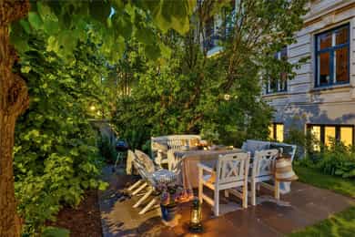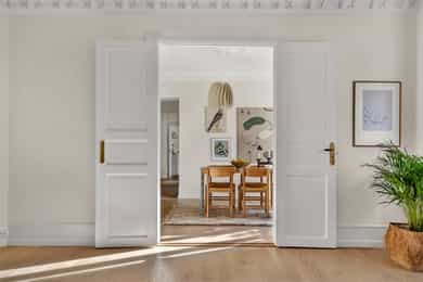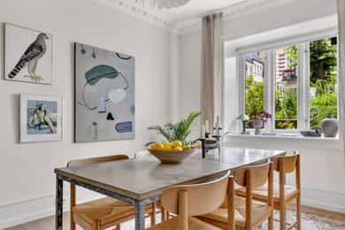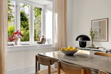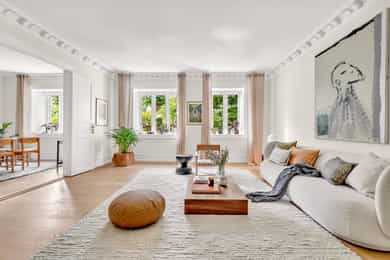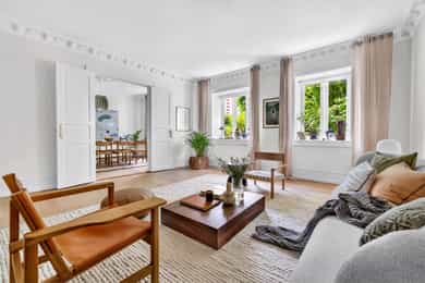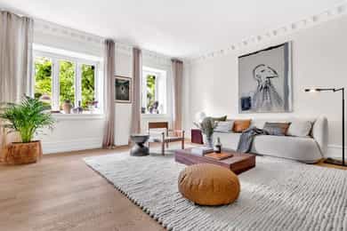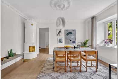 Nydelig, herskapelig hjørneleilighet m/egen inngang. Vakker forhage, klassiske detaljer og 3 ildsteder.