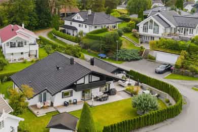 Stor og sjarmerende enebolig med hybel. Meget flotte solforhold. Attraktivt villaområde nær sjøen. Dobbelgarasje.