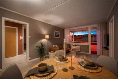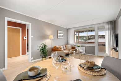 Innbydende 3-roms med solrik, sydvestvendt balkong i ettertraktet boligområde nær marka. Innglasset balkong med flott utsikt over nærområdet og fungerer som en forlengelse av stue. En meget lys bolig med optimal planløsning. Boligen holder god standard og har den siste tiden blitt pusset opp med bl.a: 2019: Pusset opp gulv og overflater. Nye hvitevarer og vinkjøler på kjøkken 2020: Nye lysbrytere 2021: Fasadeoppussing (nye vinduer og balkongdører) + våtromsrehabilitering 2025: Nye dørhåndtak Legg merke til: - Utvidet bad - God standard - Gjennomgående - God takhøyde (2,5m i stue) - Sydvestvendt balkong m/utsikt. Sol ca 12/13-22/23 sommerstid - Parkeringsleie etter venteliste - Veldrevet borettslag - V.vann/fyring inkl. - IN-ordning - Nærhet til byen, marka og offentlig transport