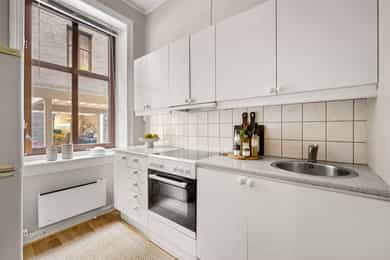 Arealeffektiv og gjennomgående 2-roms med sentral, men rolig beliggenhet i indre gård. Leiligheten har en populær beliggenhet midt på Bislett med gangavstand til en rekke hyggelige kafeer, restauranter med uteservering, butikker og offentlig kommunikasjon. Det er gangavstand til flere av byens mest populære parker, blant annet Stensparken, Iladalen og St. Hanshaugen park. Leiligheten ligger skjermet til mot bakgård og gatetun. Planløsningen er svært godt utnyttet og leiligheten inneholder entré, kjøkken, stue, soverom, bad og separat toalett.