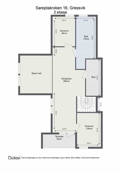 -Takhøyden i 2.etasje er 1,0 - 2,38 meter.