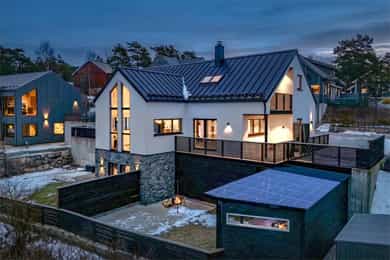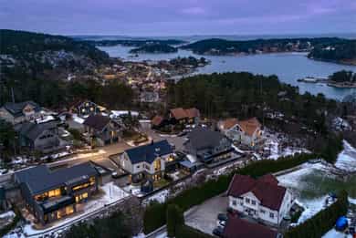 14 minutter vest for Fredrikstad sentrum, like etter Hankøsundet marina, er du fremme. Sareptakroken 16 ligger på en skogkledd utsiktstopp i et fint nabolag, med kort avstand til båtbrygger og badestrender. Med båt seiler du rett ut i Norges vakreste skjærgård, og det finnes flotte sykkelturer til f.eks. Mærrapanna, eller en fergetur ut til Hankø med strandliv, underholdning og restaurantbesøk. Boligen fra 2018 holder svært god standard og strekker seg over tre etasjer med en strøken 3-roms leilighet i underetasjen, med egen uteplass. Vi møter en stor, flott, hvitpusset bolig med herlige glassflater. De forseggjorte uteplassene har solrik terrasse og balkong med vidstrakt utsikt. Blant de vakre rommene imponerer spesielt den katedralaktige spisestuen, galleriet og utrolige badeværelsene.