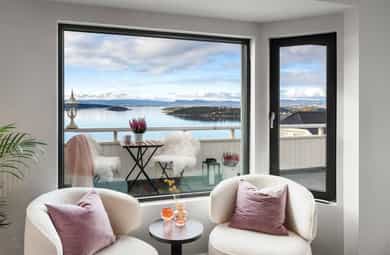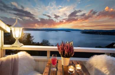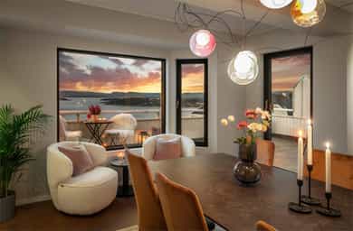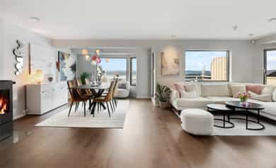Nyoppusset og påkostet toppleilighet med fantastisk sjøutsikt | Solrik terrasse | Garasje | Peis | Sjelden anledning!