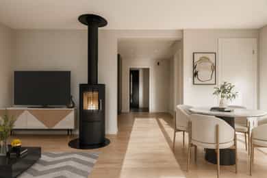 Nyoppført kjedet enebolig på 79 kvm. nær marka med markterrasse og liten hage. Boligen er arkitekttegnet av Hjort arkitekter og oppført av Mesterhus. Boligen har en åpen og fin planløsning med flotte oppholdsrom, store vindusflater og meget gode lysforhold. Alt er nytt, ubebodd og innflyttingsklart, her kan du flytte rett inn!