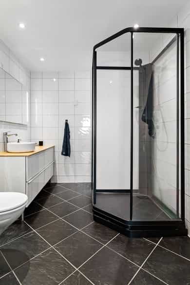 – Ny bunnventil servant, trykkplate og dusjkabinett.