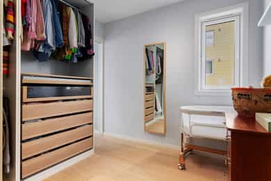 Det foreligger ferdigattest for eiendommen datert 22.april 1977. Ferdigattest utstedes av bygningsmyndighetene på grunnlag av mottatt dokumentasjon fra kontrollansvarlige når et søknadspliktig tiltak er utført i samsvar med tillatelsen og øvrige krav etter plan- og bygningslovgivningen. At ferdigattest eksisterer, gir ingen garanti for bygget er oppført i henhold til tillatelsen og gjeldende regelverk eller at det senere er utført arbeid på bygget som ikke er byggemeldt eller godkjent. Megler har gjennomgått tilgjengelige originale bygningstegninger og kan se at det er foretatt mindre planendringer innenfor boligens hoveddel, bestående av fjerning av en lettvegg mellom kjøkken og gang samt oppføring av en lettvegg på soverom mot balkong, som i dag avgrenser et omkledningsrom. Dersom man ønsker å etablere soverom der walk in closet er i dag, innebærer dette en omdisponering fra hoveddel til hoveddel. Et slikt tiltak er som utgangspunkt ikke søknadspliktig etter plan og bygningsloven. Det stilles imidlertid egne krav til rom som skal benyttes som soverom, blant annet knyttet til lysforhold, rømningsvei, ventilasjon og takhøyde. Meglerforetaket har ikke undersøkt om rommet oppfyller gjeldende krav for godkjenning som soverom. Eventuell bruk som soverom skjer derfor på kjøpers eget ansvar. Kjøper overtar all risiko knyttet til fremtidig bruk av rommet, herunder risikoen for at rommet ikke tilfredsstiller offentlige krav eller at det kan bli gitt pålegg fra kommunen. Dette omfatter også usikkerhet knyttet til en eventuell søknad om bruksendring, samt alle kostnader forbundet med dette.