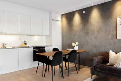 Stilren 2-roms i 8 etg. med balkong på ca. 12 m² og fantastisk utsikt - Heis - Garasjeplass* - "Alt" inkl. i felleskost.