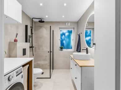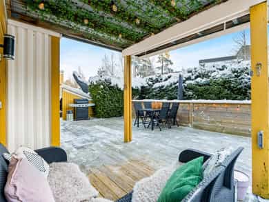 Lys og lekkert oppusset 4-roms endeleilighet m/garasje! Elbillader - Sydvendt terrasse på 37m² - Bad og kjøkken fra 2022