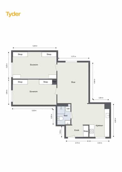BRA-i: 78 kvm. Entré, stue, kjøkken, bad og to soverom