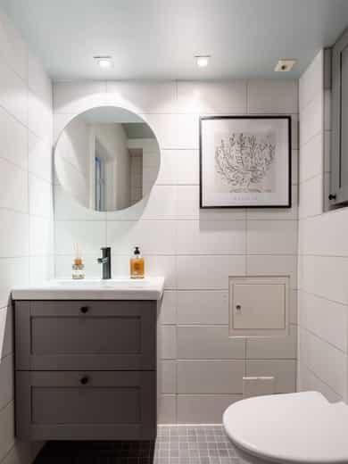 2015: Plassbygd kommode med marmortopp installert i 2015 av Custom Kitchen & Interiors AS.