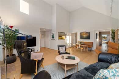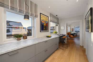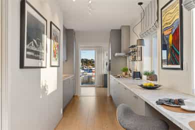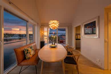 En unik mulighet på Smietangen! Fantastisk toppleilighet på 143 m² med spektakulær utsikt. Garasje. Båtplass. IN-ordning
