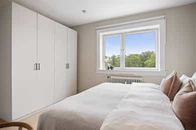 Leiligheten ligger i 4. etasje og har enkel adkomst via felles trappegang med porttelefon. Boligen byr på følgende: Entré, baderom, stue, kjøkken og soverom. Det er utgang til en vestvendt balkong på 4 kvm fra stuen. I tillegg disponerer leiligheten en loftsbod med gulvareal på 6,1 kvm og en kjellerbod på 3,1 kvm. Det er også fellesvaskeri og felles sykkelbod i kjeller. ENTRÉ: Velkommen inn! Leiligheten har en innbydende entré som skaper et umiddelbart godt førsteinntrykk. Her kan du enkelt henge i fra deg yttertøy. Interiøret i hele leiligheten preges av lyse, moderne flater. Et perfekt utgangspunkt til å innrede med egne møbler og gjenstander for å skape sitt eget personlig preg. LYS OG LUFTIG STUE M/UTGANG TIL BALKONG: Den lyse og luftige stuen har store vindusflater som slipper inn rikelig med naturlig lys. Stuen har god plass til sofagruppe og spisebord, med fleksible møbleringsmuligheter. Fra stuen er det utgang til en vestvendt balkong med gode solforhold, som fungerer som en flott forlengelse av rommet. I vår- og sommerhalvåret blir balkongen en naturlig forlengelse av stuen, perfekt for hyggelige stunder med familie og venner. Her kan du enkelt skape en koselig uteoase med utemøbler, beplantning og gass-/elektrisk grill. KJØKKEN: Kjøkkeninnredning er fra IKEA(2022) og har glatte fronter med god skap og benkeplass. Benkeplaten er av laminat med en nedfelt vaskekum og belysning over benkeplaten. Videre er det Integrert platetopp (2022), oppvaskmaskin (2022), stekeovn, mikro og kjøle-/fryseskap. HOVEDSOVEROM: Romslig hovedsoverom med stor garderobeløsning. God plass til dobbeltseng og nattbord. Soverommet er vendt mot rolige fellesområder, som skaper en behagelig atmosfære. BADEROM: Bad med flislagte vegger og gulv med varmekabler som gir en behagelig temperatur. Badet er fra 2005 da det ble modernisert av borettslaget. Baderommet er innredet med klosett, servantskap med glatte høyglansfronter, speil og dusjhjørne. Det er naturlig avtrekksventilasjon og opplegg for vaskemaskin. OPPBEVARING: Leiligheten disponerer en loftsbod på 6,1 kvm guvlareal og en kjellerbod på 3,1 kvm. ØVRIG INFORMASJON: - Takhøyden ble i stue målt til ca. 2,64 m. - Vinduer med trerammer og isolerglass, merket med produksjonsår 1997 og 2014 - Brann- og lydklassifisert entrédør (B30/Db35). - Tofløyet balkongdør med trerammer og isolerglass, merket med produksjonsår 2014. - Sikringsskap lokalisert i felles trappegang med automatsikringer - Boligen er basert på naturlig ventilasjon. Tilluft slippes inn via spalteventiler i vinduer. Avtrekk skjer via ventil på bad. - Kjøkkenventilator med kullfilter over stekesone på kjøkken. - Radiator og varmt forbruksvann fra felles bergvarmeanlegg.