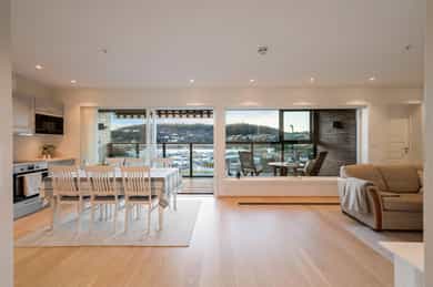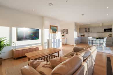Lekker 3-roms selveierleilighet (2019) vendt mot sjø! Solrik balkong og vinterhage. Heis & garasjeplass med elbil-lader.