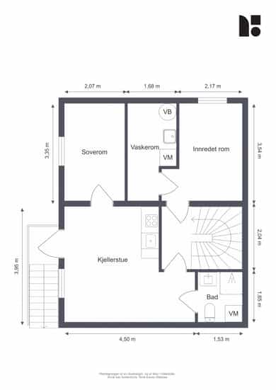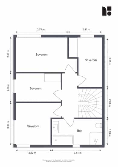 Arealmålingen og romfordelingen er ikke kontrollert opp mot godkjente plantegninger.