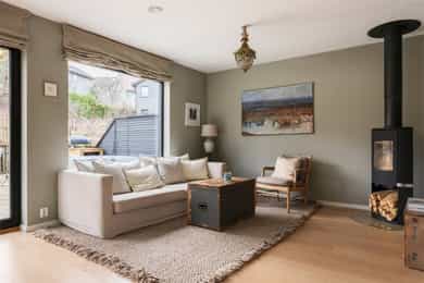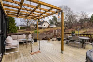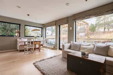 Påkostet, nyere(2019) og solrik halvpart av tomannsbolig med hagedel - 4 soverom - 2 p-plasser - Kjeller m/egen inngang