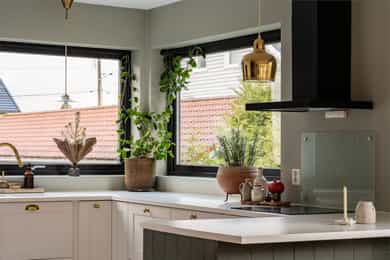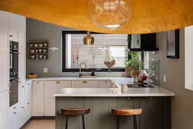 Taket i stua og på kjøkkenet ble malt i november 2025.