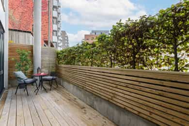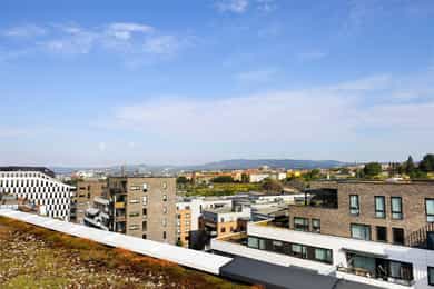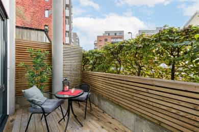 Flott 2-roms selveier fra 2016 med stor terrasse. V.vann og fyring inkl. Kun TG1. Sentralt og rolig. Felles takterrasse