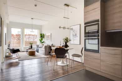 Velkommen til herlige Freserveien 43! En hyggelig 2-roms selveier med sentral beliggenhet i attraktive Kværnerbyen. Leiligheten ligger i et bygg fra 2016 og byr på en stor terrasse, en meget romslig stue med åpen løsning til kjøkkenet, soverom vendt mot rolige omgivelser og et pent, flislagt bad. Her bor du i nærheten av matbutikker, spisesteder og idylliske turområder. Kvaliteter: - Endeleilighet - Terrasse på 12 m² - God lagringsplass i bod på 6 m² - Lave bokostnader - Varmtvann og fyring ink. - Høy standard, ingen TG2/TG3 - Malt i 2025 - Kun 15 minutter gange til Bjørvika - Svartdalsparken og turområder som nærmeste nabo - Gode bussforbindelser Velkommen til visning!