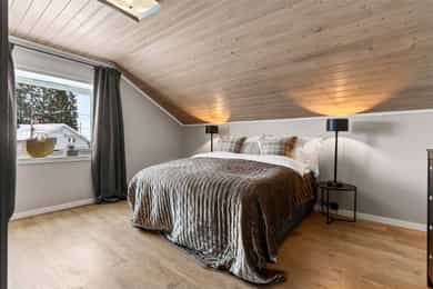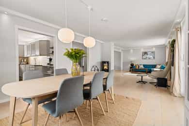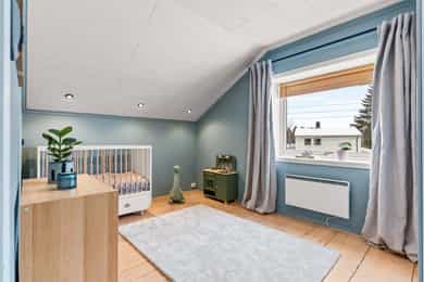 Lys og romslig familiebolig med attraktiv beliggenhet, stor terrasse på ca. 48 kvm og solrike uteområder. Boligen har en gjennomtenkt planløsning med delikat stue, klassisk kjøkken, to bad, loftstue og hele fire soverom. Her får du gode oppholdsrom, peisovn, gulvvarme i flere rom og rikelig med lagringsplass i underetasjen. Perfekt for barnefamilien som ønsker plass, komfort og en trygg ramme rundt hverdagen. - To stuer - 4 soverom + loftstue - 2 bad med gulvvarme og vaskerom - Terrasse ca. 48 kvm - Stor, lettstelt hage med god boltringsplass - Peisovn og downlights - Svært god lagringsplass i boder - Familievennlig og solrik tomt - Godkjent søknad om oppføring av garasje - Gangavstand til skoler, barnehager, fritid og buss