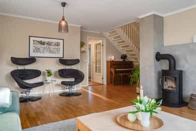 Velholdt familievennlig enebolig m/sentrumsnær beliggenhet - Carport - Terrasse (67 kvm) - Hage - Gjennomgående standard