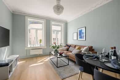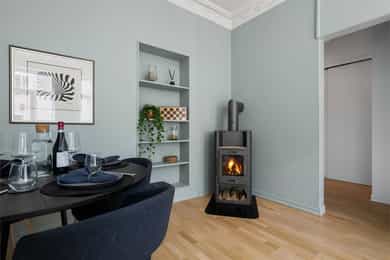 Lys & sjarmerende 2-roms - Stukkatur, rosett & generøs takhøyde - Peis - Ingen dok.avg - VV ink. - Sentralt & attraktivt
