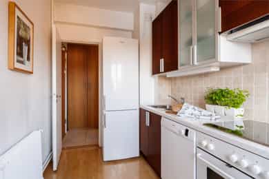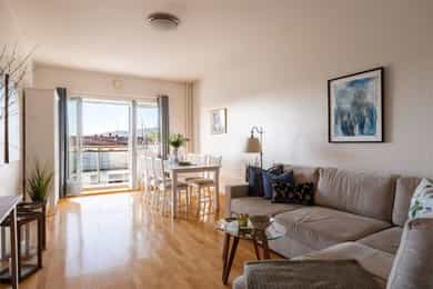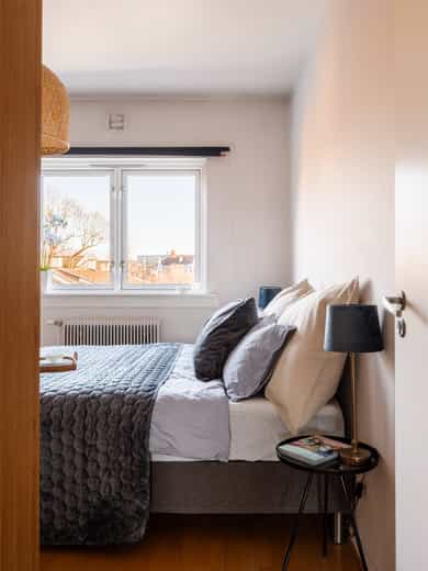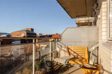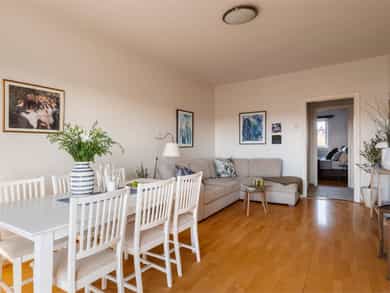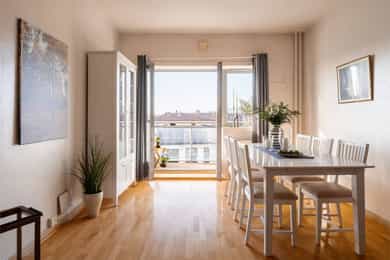 TVERRBAKKEN 4D En meget lys og usjenert 2-roms selveier beliggende populært til på Torshov. Leiligheten ligger høyt til i 3.etg med en fantastisk utsikt mot fjorden og Holmenkollen, samt meget gode solforhold på balkongen. Gjennomgående, praktisk planløsning med separat kjøkken, flislagt bad m/opplegg for vaskemaskin og romslig stue. Sentral, men tilbaketrukket beliggenhet med kort vei til off.kom, koselige kaféer og parker. - Noe moderniseringsbehov, mulighet for 2 soverom - Gj.gående planløsning m/separat kjøkken - Flott naturlig lysinnslipp fra store vinduer - Helt usjenert med fjordutsikt og ingen innsyn - Vestvendt balkong på 5 kvm med sol fra 15:00 - 22:00 på sommerstid - V.vann, fyring og fibernett inkl. i FK - Populær beliggenhet med kort vei til butikker, grøntområder og off.kom