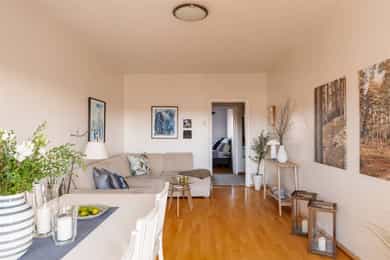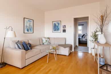 Meget lys, luftig og gj.gående 2-roms m/solrik balkong og utsikt | Usjenert | V.vann & fyring inkl. | Populært