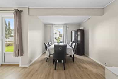 Nordvik har gleden av å ønske velkommen til Slagenveien 76A - et romslig enderekkehus over to plan med arealeffektiv planløsning. Boligen har 3 soverom, stor stue/spisestue, kjøkken med spiseplass, eget vaskerom og toalett, samt god lagringsplass i boder, loft og utebod. I 2025 er det gjort oppgraderinger, blant annet nytt kjøkken og nye gulv i flere rom i første etasje. Det siste året er det blitt skiftet vinduer og malt utvendig. Hjemmet ligger svært sentralt i populære og hyggelige Trudvanglia, med gangavstand til skoler, barnehage, turområder, idrettsanlegg, togstasjon og sentrum. Dagligvare ligger like i nærheten, og det er sykkel- og gangvei inn til Tønsberg sentrum. Parkering finnes i garasje og ved inngang. Velkommen til visning!