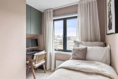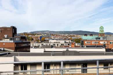 Henrik Carlyle v/ Nordvik har gleden av å presentere Herslebs gate 17B! En unik penthouseleilighet med luftig beliggenhet i 7. etasje. Leiligheten har en stor takterrasse på 44 kvm, en luftig balkong på 6 kvm og flott utsikt over Oslo. Her kan du nyte solen hele dagen! Boligen ligger i et moderne bygg fra 2007, med heis og mulighet for kjøp av egen parkeringsplass. Her får du pene overflater med blant annet flott enstavs eikeparkett og Svane-kjøkken fra 2021. Med en svært sentral beliggenhet bor du i umiddelbar nærhet til alt av byens fasiliteter og kollektivtransport. Kort oppsummert: - Takterrasse på ca. 44 kvm - Balkong på ca. 6 kvm - Lekkert Svane-kjøkken fra 2021 - Heis - Mulighet for å kjøpe garasjeplass - Bygg fra 2007 - Kjellerbod på ca. 6 kvm - Lavt strømforbruk på 4224 kwh