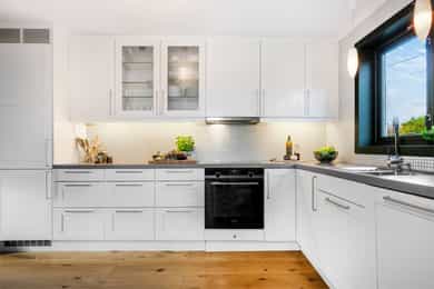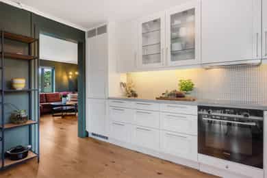 • Pent Sigdal kjøkken med integrerte hvitevarer.