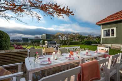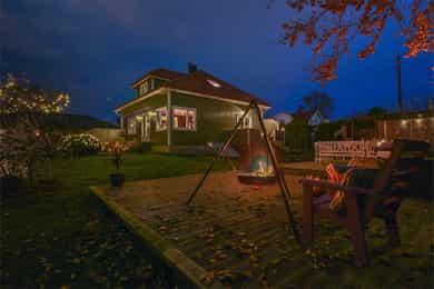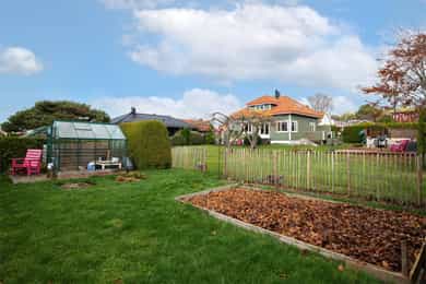 Sjarmerende, stilsikker enebolig m/uteplasser på 108 m²- Fantastisk, solrik og idyllisk hage -Meget sentralt på Halmstad