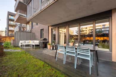 Velkommen til Bertrand Narvesens vei 4C, presentert av Nordvik v/ Ole Kristian Isdahl - En lekker 3-roms leilighet fra 2013 med gjennomgående god standard. Fra stuen har du utgang til en 20kvm stor markterrasse. Leiligheten ligger i byggets 1. etasje. Boligen inneholder 2 soverom, entré, bad, åpen kjøkkenløsning fra EPOQ, installert i 2018 og stue med utgang til en nordvestvendt markterrasse. Attraktiv beliggenhet sentralt på Hasle med nærhet til de fleste servicetilbud. Verdt å merke seg: - Nordvestvendt markterrasse på ca 20kvm - Lekkert EPOQ-kjøkken fra 2018 - Garasjeplass m/ lader - Kjellerbod på ca 6,6kvm - Fjernvarme og varmtvann inkludert - Sentral beliggenhet på Hasle - Kort vei til kollektivtilbud - Nærhet til flotte turmuligheter