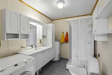 Det opplyses om at ingen kan eie mer enn to boligseksjoner i sameiet, jf. eierseksjonsloven § 23. Seksjoner som eies av nærstående eller via firma teller med. Etter lov om eierseksjoner § 31, er sameierne overfor sameiets kreditorer ansvarlige etter sin sameiebrøk. Ved manglende betaling av fellesutgifter har sameiet legalpanterett i den enkelte eierseksjon på inntil 2 ganger folketrygdens grunnbeløp. Kjøper og selger er forpliktet til å undertegne standard kjøpekontrakt utarbeidet av Nordvik i forbindelse med eiendomstransaksjonen. Kjøpekontrakt kan besiktiges hos eiendomsmegler før bud inngis. Kontakt eiendomsmegler for spørsmål. Utdrag fra tilstandsrapport: Tilstanden vurderes med ulike tilstandsgrader: TILSTANDSGRAD 0, TG0: INGEN AVVIK TILSTANDSGRAD 1, TG1: MINDRE AVVIK TILSTANDSGRAD 2, TG2: AVVIK SOM IKKE KREVER UMIDDELBARE TILTAK TILSTANDSGRAD 2, TG2: AVVIK SOM KAN KREVE TILTAK TILSTANDSGRAD 3, TG3: STORE ELLER ALVORLIGE AVVIK TILSTANDSGRAD IU, TGIU: IKKE UNDERSØKT/IKKE TILGJENGELIG Følgende punkter har fått tilstandsgrad 3: Bad generell Vurdering av avvik: Våtrommet må oppgraderes for å tåle normal bruk etter dagens krav. Konsekvens/tiltak: Våtrommet har behov for omfattende oppgraderinger. For å sikre en løsning som oppfyller gjeldende krav, bør tettesjikt, sluk og røropplegg oppgraderes og dokumenteres. Kostnadsestimat: 100 000 - 300 000 Følgende punkter har fått tilstandsgrad 2(Avvik som kan kreve tiltak): Nedløp og beslag Vurdering av avvik: Det er ikke tilfredsstillende bortledning av vann fra taknedløp ved grunnmur. Konsekvens/tiltak: Det bør lages system for bortledning av vann fra taknedløp ved grunnmur. Kostnadsestimat: Under 10 000 Pipe og ildsted Vurdering av avvik: Ildfast plate mangler på gulvet under sotluke/feieluke på pipe. Konsekvens/tiltak: Det anbefales å montere ildfast plate under luker på pipe. Elektrisk anlegg Dette er en forenklet kontroll begrenset til de spørsmål og undersøkelser som forskrift til avhendingslova (tryggere bolighandel) § 2-18 inneholder. Dette kan ikke sammenlignes med en kontroll utført av offentlig myndighet (Det lokale eltilsyn) eller registrert elektrovirksomhet, og en bygningssakkyndig har verken kompetanse eller lov til å foreta en slik kontroll. Tilstandsgraden er vurdert ut fra den forenklede og begrensede kontrollen som forskriften inneholder. El-anlegget kan ha feil og mangler som en slik forenklet undersøkelse ikke vil avdekke. Vær derfor oppmerksom på denne risikoen, og søk videre veiledning eller få en fullstendig kontroll utført av registrert elektrovirksomhet. Boligen har skjult elektrisk anlegg. Sikringsskap mad automatsikringer er plassert inne på bod. 1. Foreligger det eltilsynsrapport de siste 5 år, og det er ikke foretatt arbeid på anlegget etter denne, utenom retting av eventuelle avvik i eltilsynsrapport (dvs en el-tilsynsrapport uten avvik)? Nei. Spørsmål til eier 2. Når ble det elektriske anlegget installert eller sist gang totalt rehabilitert (årstall)? Med totalt rehabilitert menes fullstendig utskiftet anlegg fra inntakssikring og videre. 1997. 3. Er alle elektriske arbeider/anlegg i boligen utført av en registrert elektroinstallasjonsvirksomhet? Ja. 4. Er det elektriske anlegget utført eller er det foretatt tilleggsarbeider på det elektriske anlegget etter 1.1.1999? Ja. Eksisterer det samsvarserklæring? Nei. 5. Foreligger det kontrollrapport fra offentlig myndighet – Det Lokale Eltilsyn (DLE) eller eventuelt andre tilsvarende kontrollinstanser med avvik som ikke er utbedret eller kontrollen er over 5 år? Nei. 6. Forekommer det ofte at sikringene løses ut? Nei. 7. Har det vært brann, branntilløp eller varmgang (for eksempel termiske skader på deksler, kontaktpunkter eller lignende) i boligens elektriske anlegg? Nei. Generelt om anlegget 8. Er det tegn til at det har vært termiske skader (tegn på varmgang) på kabler, brytere, downlights, stikkontakter og elektrisk utstyr? Sjekk samtidig tilstanden på elektrisk tilkobling av varmtvannsbereder, jamfør eget punkt under varmtvannstank. Nei. 9. Er der synlig defekter på kabler eller er disse ikke tilstrekkelig festet? Nei. Inntak og sikringsskap 10. Er det tegn på at kabelinnføringer og hull i inntak og sikringsskap ikke er tette, så langt dette er mulig å sjekke uten å fjerne kapslinger? Nei. 11. Finnes det kursfortegnelse, og er den i samsvar med antall sikringer? Ja. 12. Foreta en helhetsvurdering av det elektriske anlegget, dets alder, allmenne tilstand og fare for liv og helse. Bør det elektriske anlegget ha en utvidet el-kontroll? Nei. Følgende punkter har fått tilstandsgrad 2(avvik som ikke krever tiltak): Radon Vurdering av avvik: Det er ikke foretatt radonmålinger, og bygget er heller ikke utført med radonsperre. Konsekvens/tiltak: Det bør gjennomføres radonmålinger. Kostnadsestimat: Ingen umiddelbar kostnad Fuktsikring og drenering Vurdering av avvik: Mer enn halvparten av forventet levetid på drenering er overskredet. Konsekvens/tiltak: Overvåk tilstanden jevnlig. For å få tilstandsgrad 0 eller 1 må dreneringen skiftes ut, men tidspunktet for når dette er nødvendig er vanskelig å si noe om. Kostnadsestimat: Ingen umiddelbar kostnad Terrengforhold Vurdering av avvik: Det er påvist dårlig fall eller flatt terreng inn mot grunnmur og dermed muligheter for større vannansamlinger. Konsekvens/tiltak: Det er ikke behov for utbedringstiltak. Kostnadsestimat: Ingen umiddelbar kostnad Resterende punkter har fått tilstandsgrad 1 eller 0. Se vedlagte tilstandsrapport for mer informasjon.