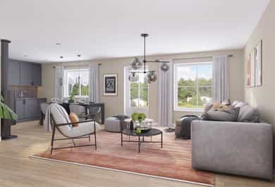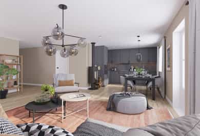 Halvpart tomannsbolig - Økonomisk bolig med carport, peisovn, balansert ventilasjon og 2/3 soverom.