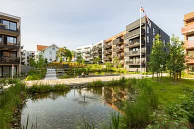 • Store, pent opparbeidede fellesarealer med beplantning, internstier og sitteplasser