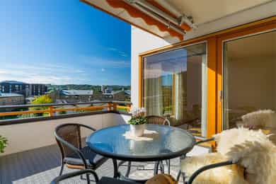 Flott 3-roms med attraktiv beliggenhet i Melhus sentrum. Sørvendt og solrik balkong med flott utsikt. P-garasje og heis.